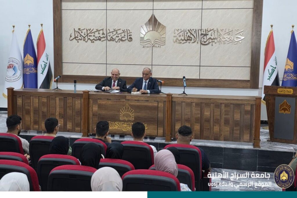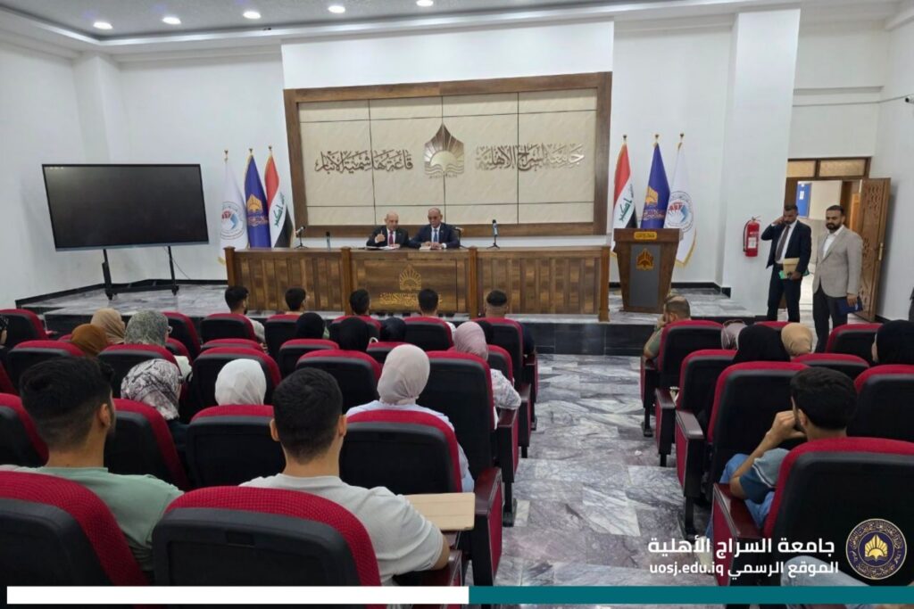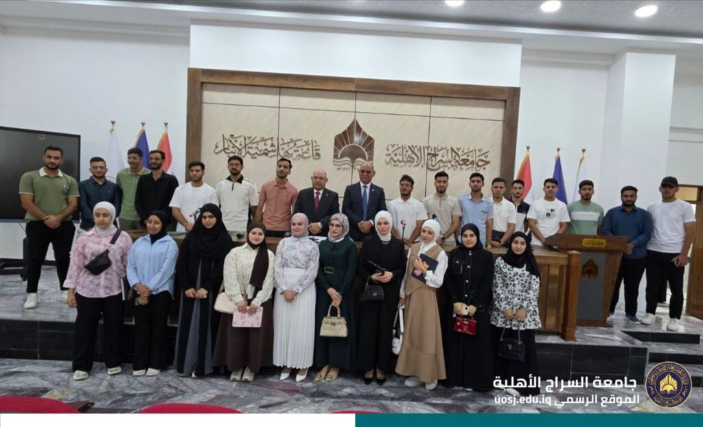 في إطار نهج الانفتاح والتواصل المباشر مع الطلبة، نظمت جامعة السراج جلسة حوارية مفتوحة جمعت الأستاذ الدكتور خالد حمزة المعيني رئيس الجامعة، والأستاذ المساعد الدكتور حميد مدلول الكبيسي مساعد رئيس الجامعة للشؤون العلمية مع طلبة كليات الجامعة.