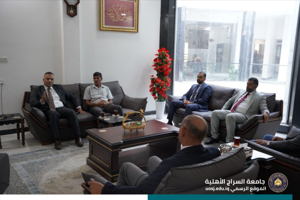 استقبل الأستاذ الدكتور خالد حمزة المعيني رئيس جامعة السراج، الأستاذ وليد خالد نغيمش الزوبعي مدير ناحية بوابة النصر والسلام والوفد المرافق له، بحضور الأستاذ المساعد الدكتور بلال الزبيدي عميد كلية الإدارة والاقتصاد.