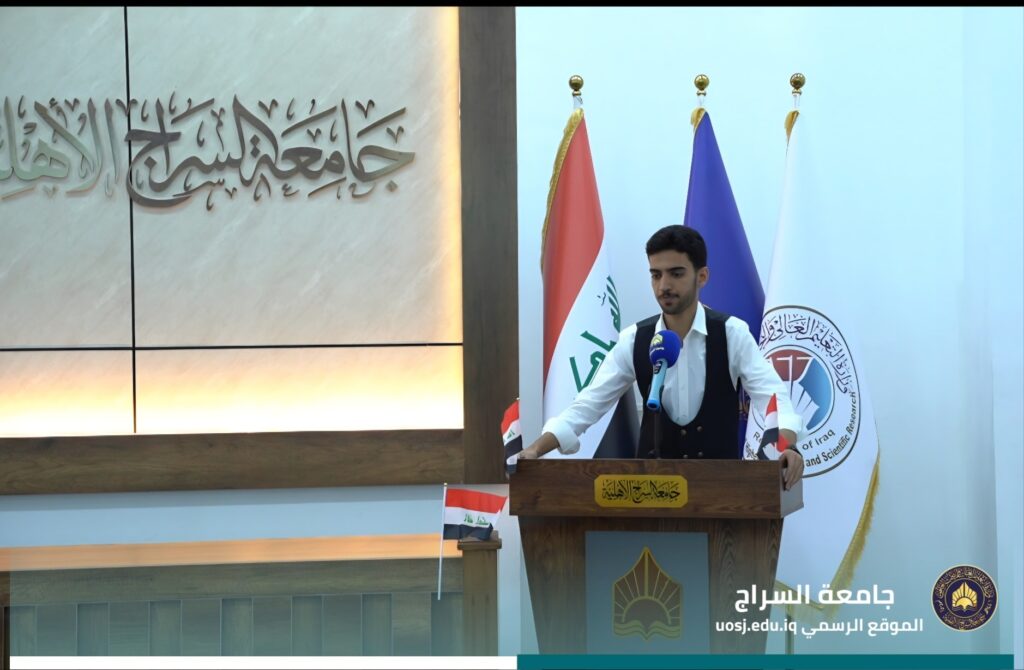 بأجواءٍ وطنيةٍ مفعمةٍ بالفخر والانتماء، أقامت جامعة السراج احتفالية بمناسبة العيد الوطني العراقي، استُهلّت بعزف السلام الجمهوري، أعقبها إلقاء كلمة رئاسة الجامعة من قبل الأستاذ المساعد الدكتور حميد مدلول الكبيسي، مساعد رئيس الجامعة للشؤون العلمية، التي أكّد فيها على قيم الولاء للوطن ودور الجامعات في بناء مستقبل العراق.